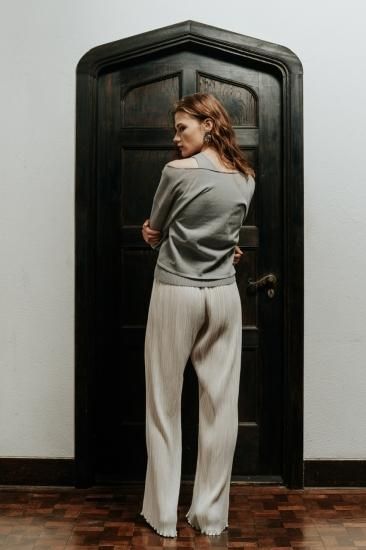 素材は麻をあえて染めずに残すことでナチュラルな見え方に仕上げました。